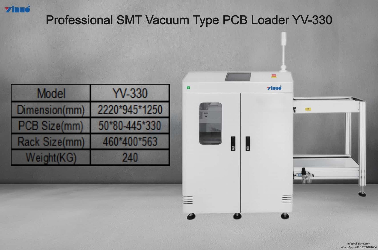 For more information about the Professional SMT Vacuum Type PCB Loader YV-330, Bitte senden Sie eine E-Mail an
