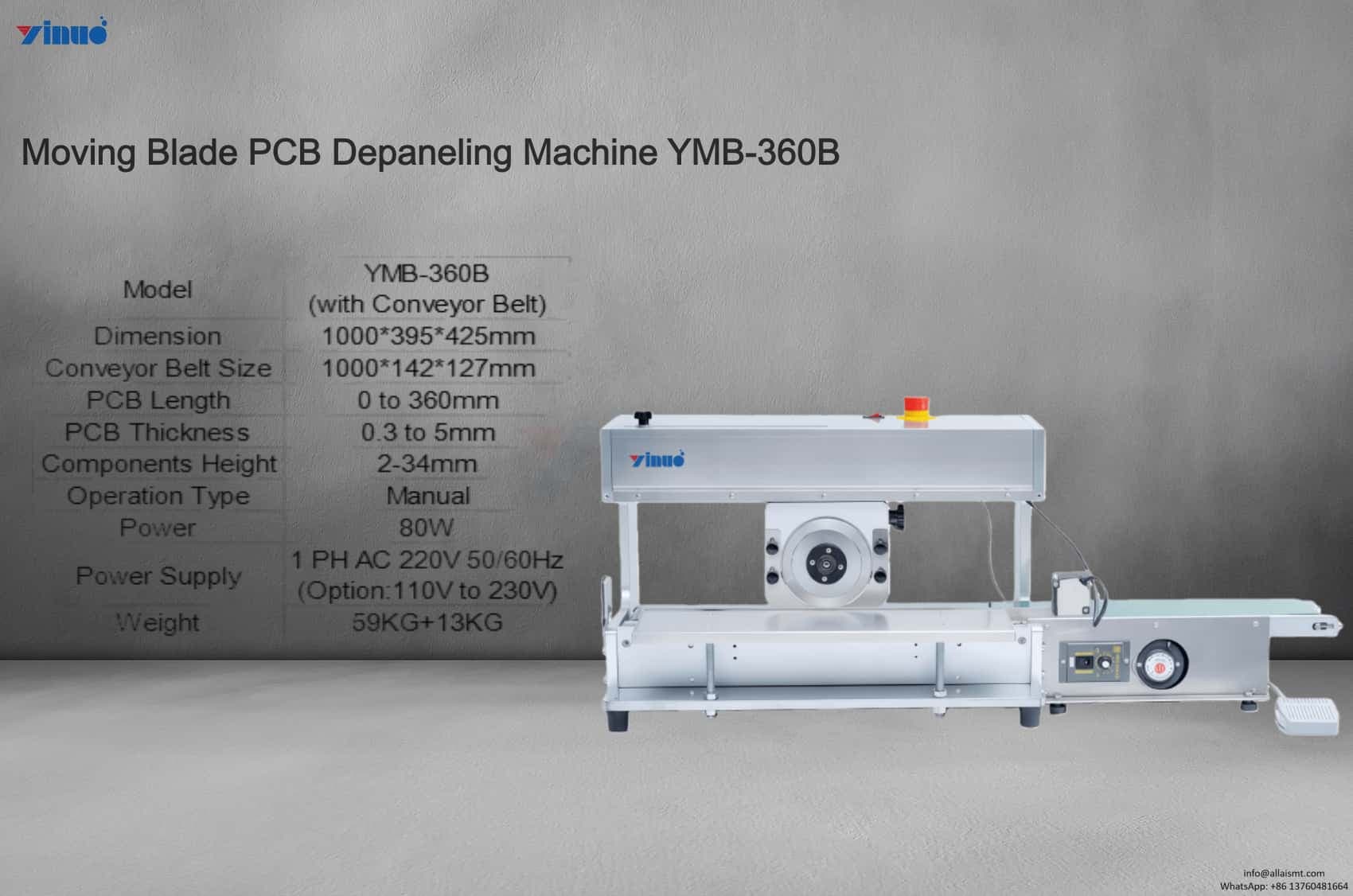 For more information about the Moving Blade PCB Depaneling Machine YMB-360B, please send an email to