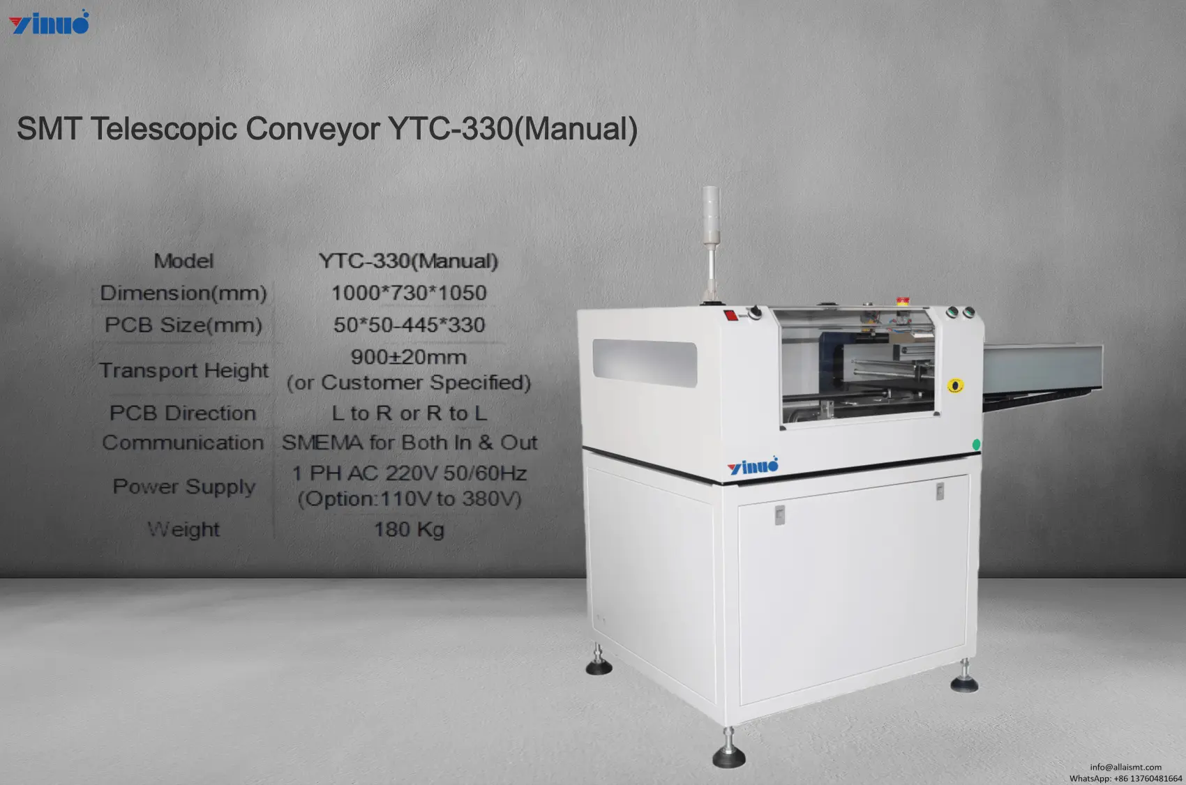 For more information about the SMT Telescopic Conveyor YTC-330(Manual), please send an email to