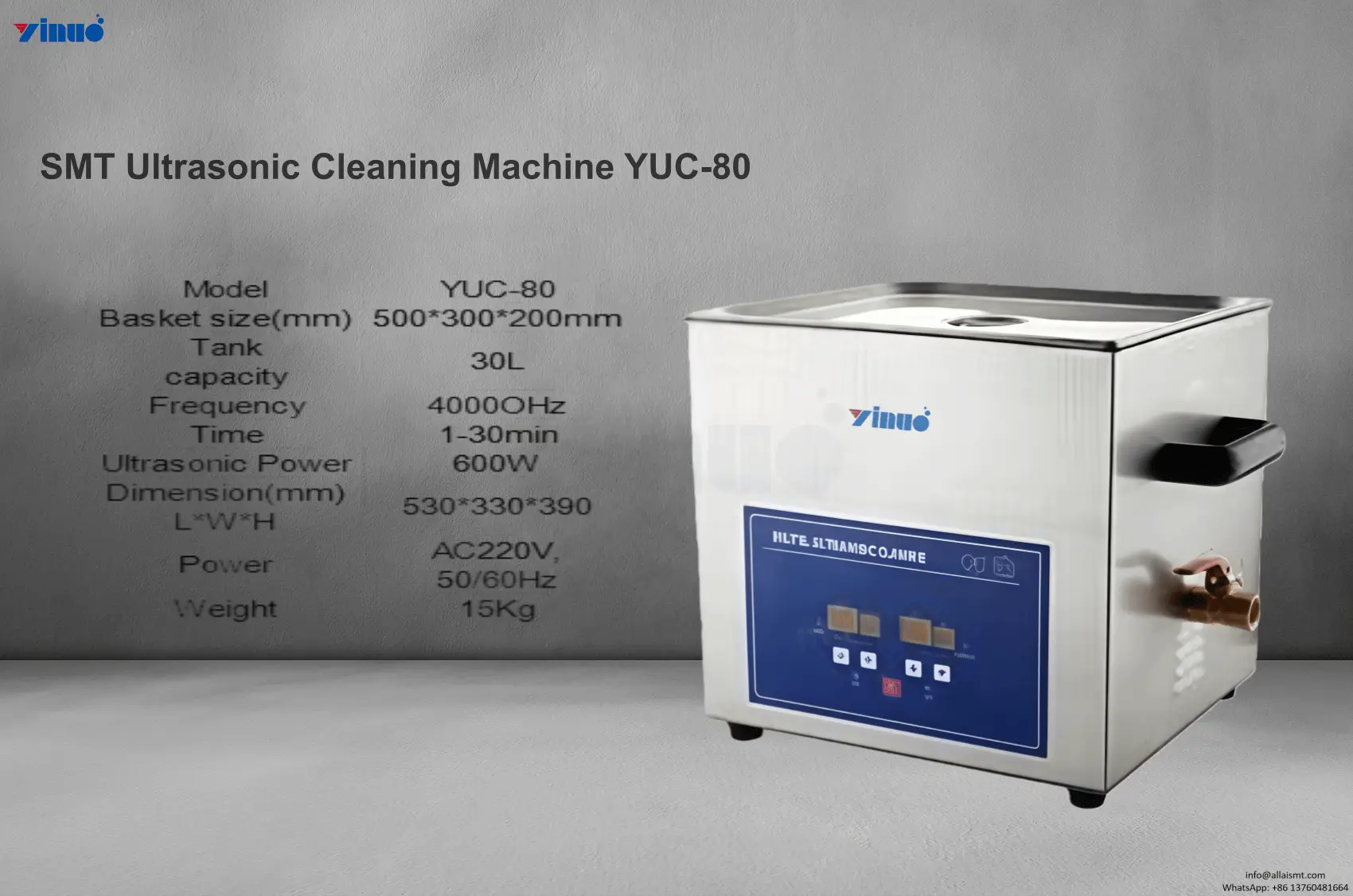 Он SMT Ultrasonic Cleaning Machine YUC-80 delivers high-performance cleaning for PCB stencils, nozzles, and SMT tools using advanced ultrasonic technology. It thoroughly removes solder paste, flux, and contaminants while protecting delicate components, ensuring consistent PCB assembly quality and minimizing defects.