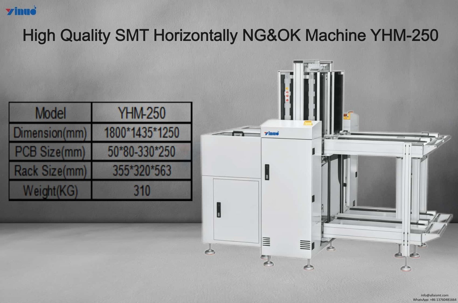 For more information about the High Quality SMT Horizontally NG OK Machine YHM-250, Vui lòng gửi email đến